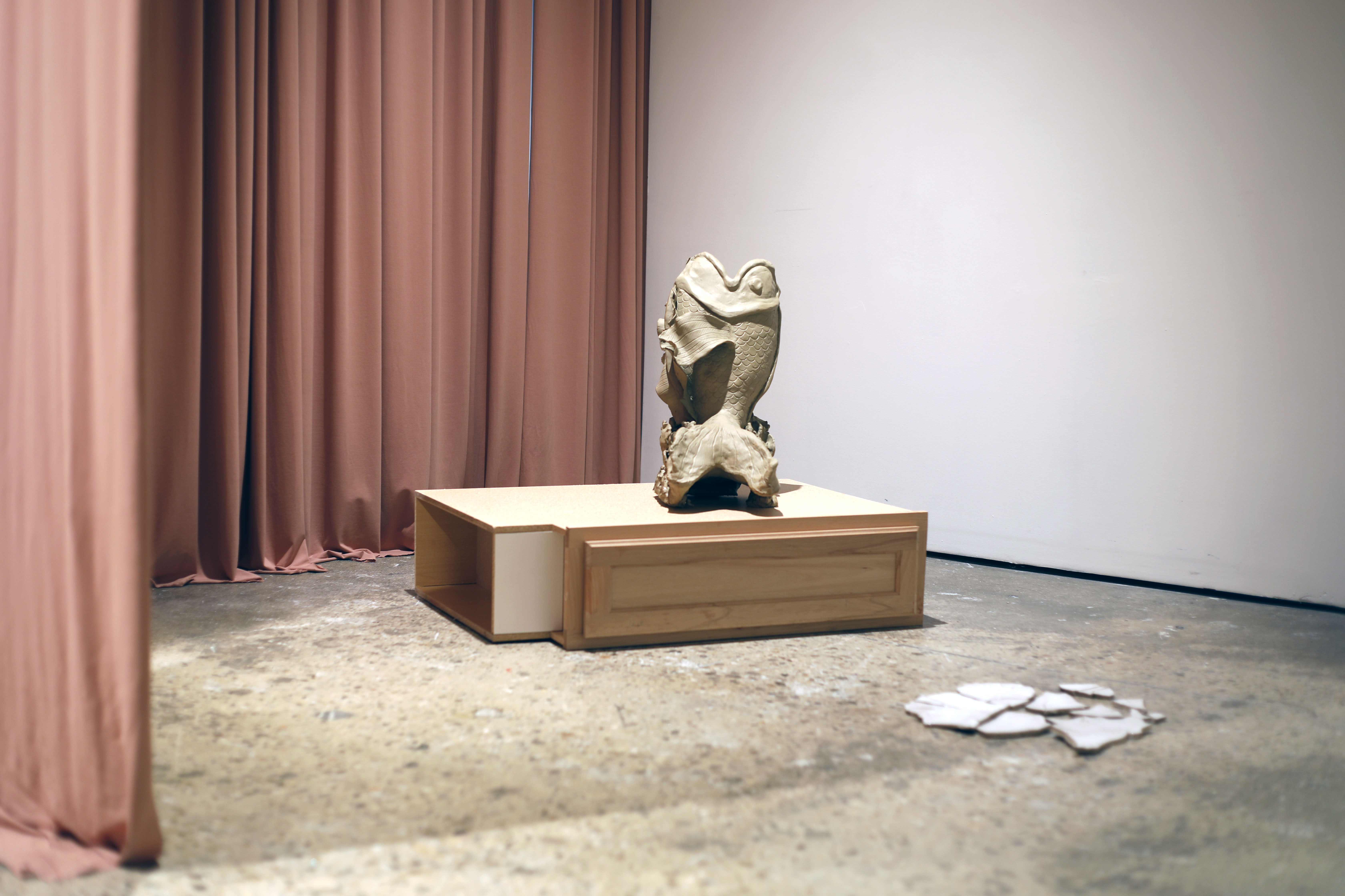 unglzed and glazed ceramic, fabric, kitchen cabinets
